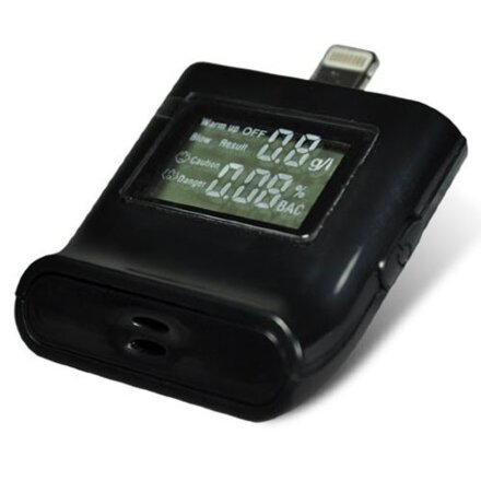 Портативный алкометр для быстрых проверок, работающий совместно с мобильными устройствами на базе ОС "Android". Подключается к USB-разъему смартфона (планшета) и потому не требует собственного источника питания. После проведения теста на ЖК-экране отображается содержание алкоголя, и в зависимости от этого дисплей меняет свой цвет на зеленый, желтый или красный. Таким образом, с помощью цифрового алкотестера IPEGA для устройств на Android можно мгновенно определить, пьян или трезв испытуемый, а также степень его опьянения.